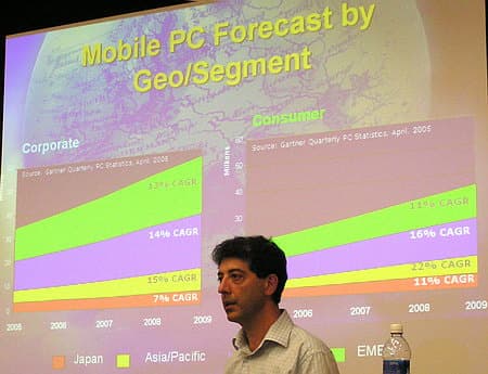 Относительно будущего мобильных платформ и процессоров Денни Жабур (Denny Jabour, Director of Customer Marketing Intel Mobile Platform Group, на фото ниже) подчеркнул, что скорость роста рынков мобильных систем в различных регионах мира различна и наиболее высока она в Азии (кроме Японии) и Америке.