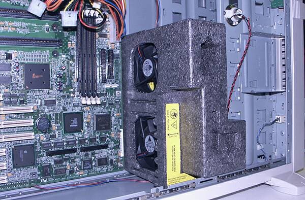 А это оригинальный модуль из пенопласта призванный охлаждать накопители и прочие внутренности достаточно крупного серверного корпуса: