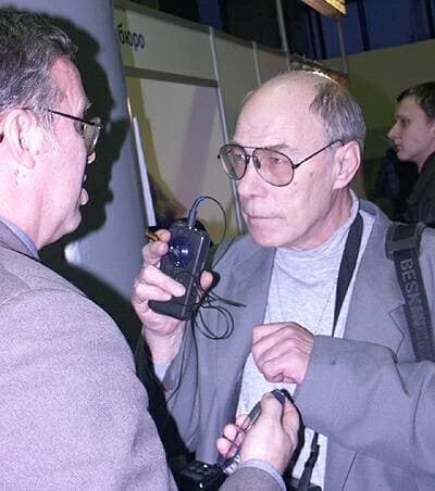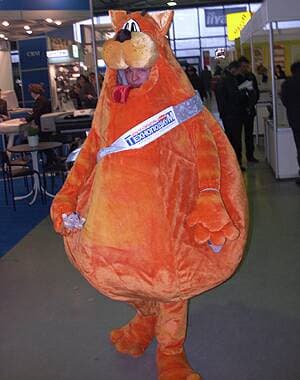 А в это время по выставке перемещался профессиональный журналист из рекламного издания «Техноподиум» (им же принадлежал и встреченый ранее толстый кот) и брал интервью у каких-то, судя по всему, важных дяденек и тетенек. Закалка у журналиста была мощная, старой еще школы, как впрочем и диктофон (аналоговый), и фотоаппарат (пленочный):