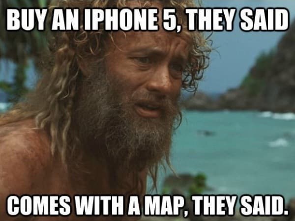 С другой стороны, с технологиями и сервисами не все так просто, и даже у Apple случаются впечатляющие провалы. Самый яркий пример — это, пожалуй, карты. Очевидно, что свой сервис карт и навигации в экосистеме нужен как воздух: пользователям то и дело необходимо куда-то добраться или посмотреть место на карте или еще что. При этом сервисы карт (включая геолокацию) могут глубоко интегрироваться в систему (показывать место встречи, указывать, как туда добраться, отображать друзей на карте, делать кучу всего еще) для удобства пользователей. Использовать сторонний сервис и фактически отдавать всю ценнейшую информацию главному конкуренту недопустимо. В силу этих причин Apple решила создать свою собственную систему карт и навигации и…