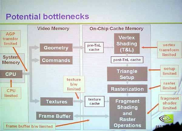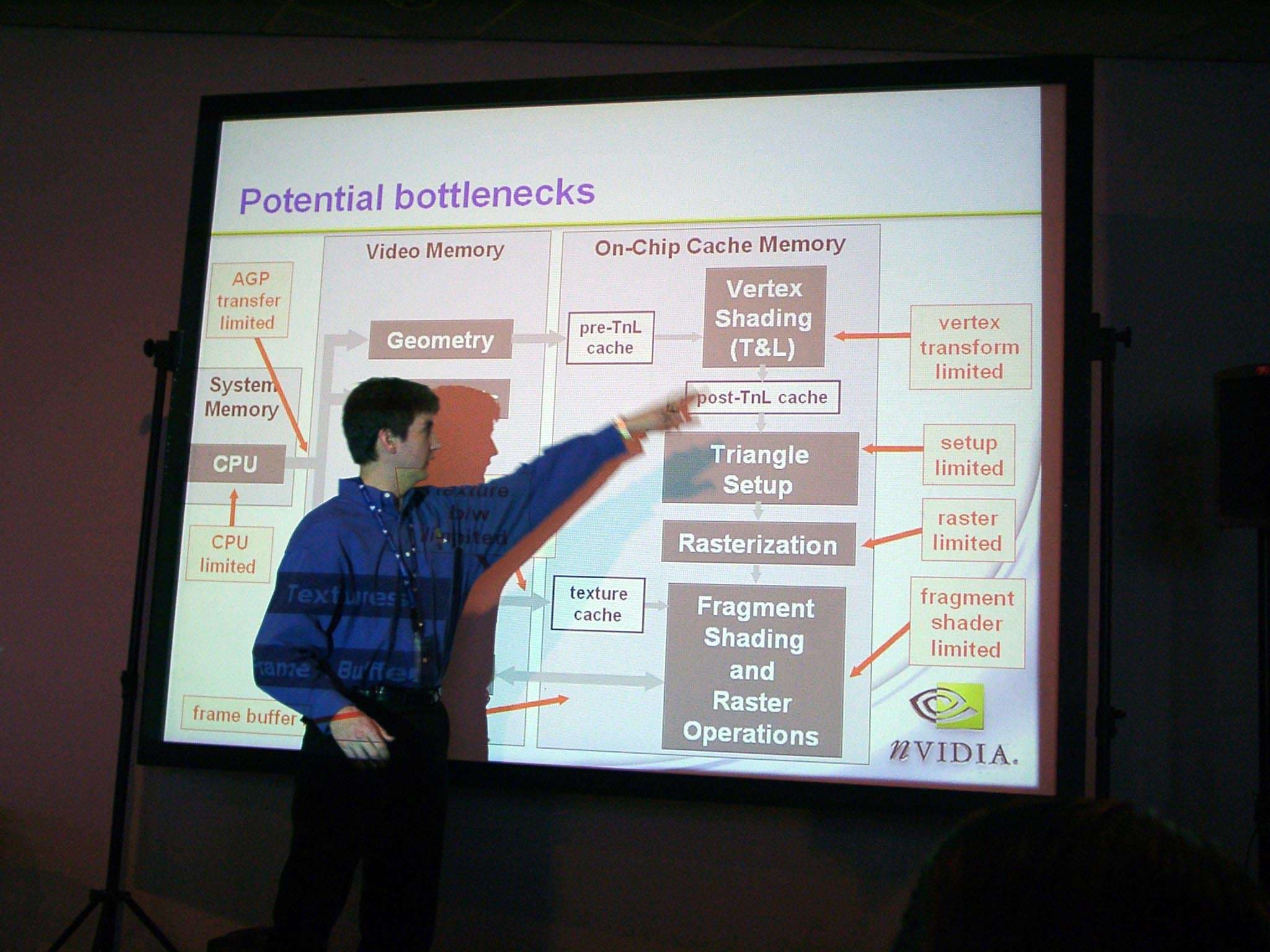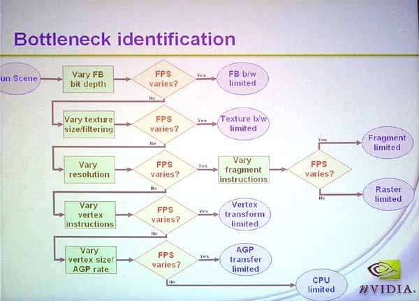Поэтому очень важным моментом является выявление этих узких мест. Джон большое количество времени уделил схематике отслеживания bottleneck, призывая разработчиков при создании движков делать более гибкими инструменты отключения или включения тех или иных функций.