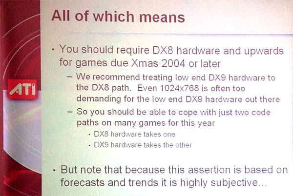 - Игры должны требовать видеокарты уровня не менее DX8 к рождеству 2004.