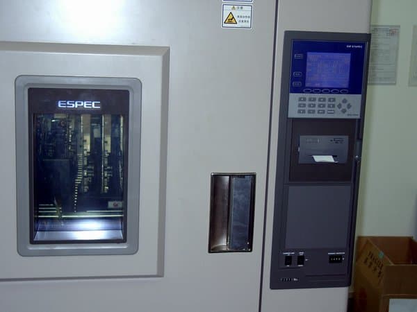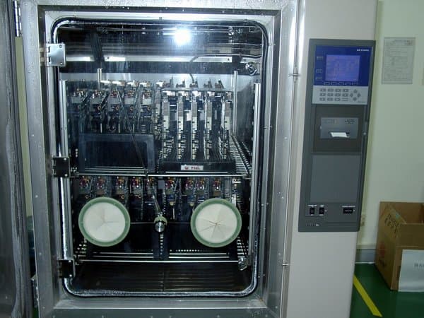 Во-вторых, специальной проверке подвергаются выбранные наугад представители каждой партии материнских плат. Этому компоненту QDI уделяет очень большое внимание: так, вплоть до 100% плат новой серии исследуются по полной программе, в то время как для устоявшихся продуктов эта цифра составляет порядка 5%. Первым, наиболее массовым видом специальной проверки является тест на функциональность после сильного нагрева. Партию плат помещают в камеру, где они нагреваются почти до 100°С при очень высоком уровне влажности (совсем как в реальности на улицах Китая ;)). После окончания сеанса «сауны» все экземпляры проходят повторное комплексное тестирование на стенде.