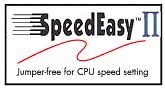 SpeedEasy II. Первая версия (SpeedEasy) этой технологии безджамперного разгона системы была воплощена в жизнь специалистами компании еще в 1996 году, первыми в мире. Технология была запатентована, а в настоящий момент реализована уже вторая версия. Функциональность, выносимая в отдельный пункт меню BIOS Setup, заключается в возможности выбрать из ряда допустимых значений показатели скорости процессора, а также изменить величину подаваемого на процессор, память и видеокарту напряжения (напряжение на процессоре можно как увеличивать, так и уменьшать). Отметим, что в настоящий момент все крупные производители материнских плат выпускают модели с подобной функциональностью, наиболее известна аналогичная фирменная технология Abit — SoftMenu (нескольких версий). На случай задания недопустимо высоких значений параметров, при которых система просто не сможет загрузиться, имеется возможность сбросить все разгонные установки в номинальные значения, а затем продолжить выставление параметров по новой.