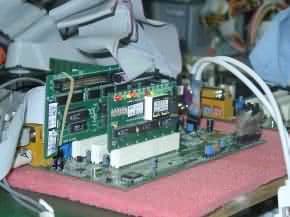 В случае положительного заключения (а иное на этой стадии почти невероятно) приходит черед ручной установки различных набортных элементов — разъемов DIMM, PCI, блока задней панели, конденсаторов и пр.