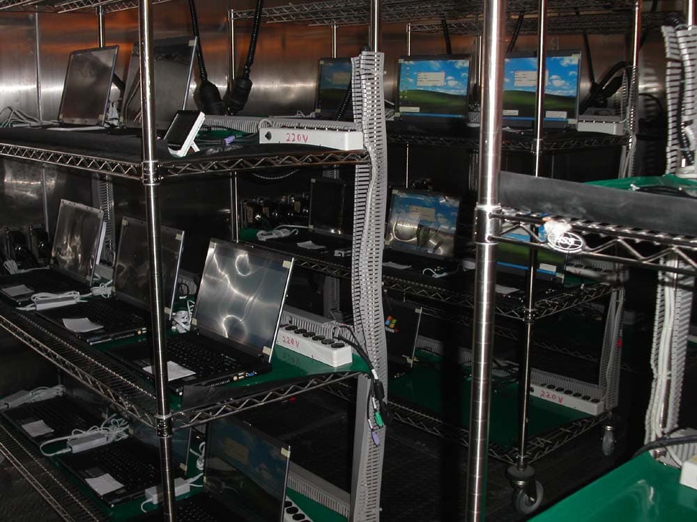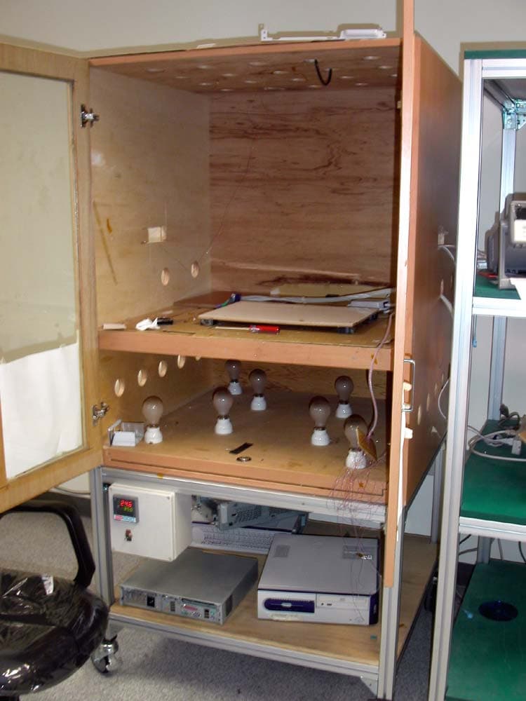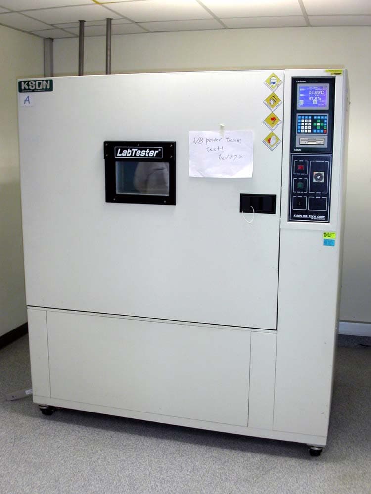 Ноутбуки, перед тем как пустить в серийное производство также проходят отдельное тестирование. На начальном этапе используют простые по конструкции, но эффективные шкафы с обыкновенными лампами, которые достаточно быстро нагревают воздух в закрытом шкафу, а специальные датчики регистрируют изменения в работе системы.