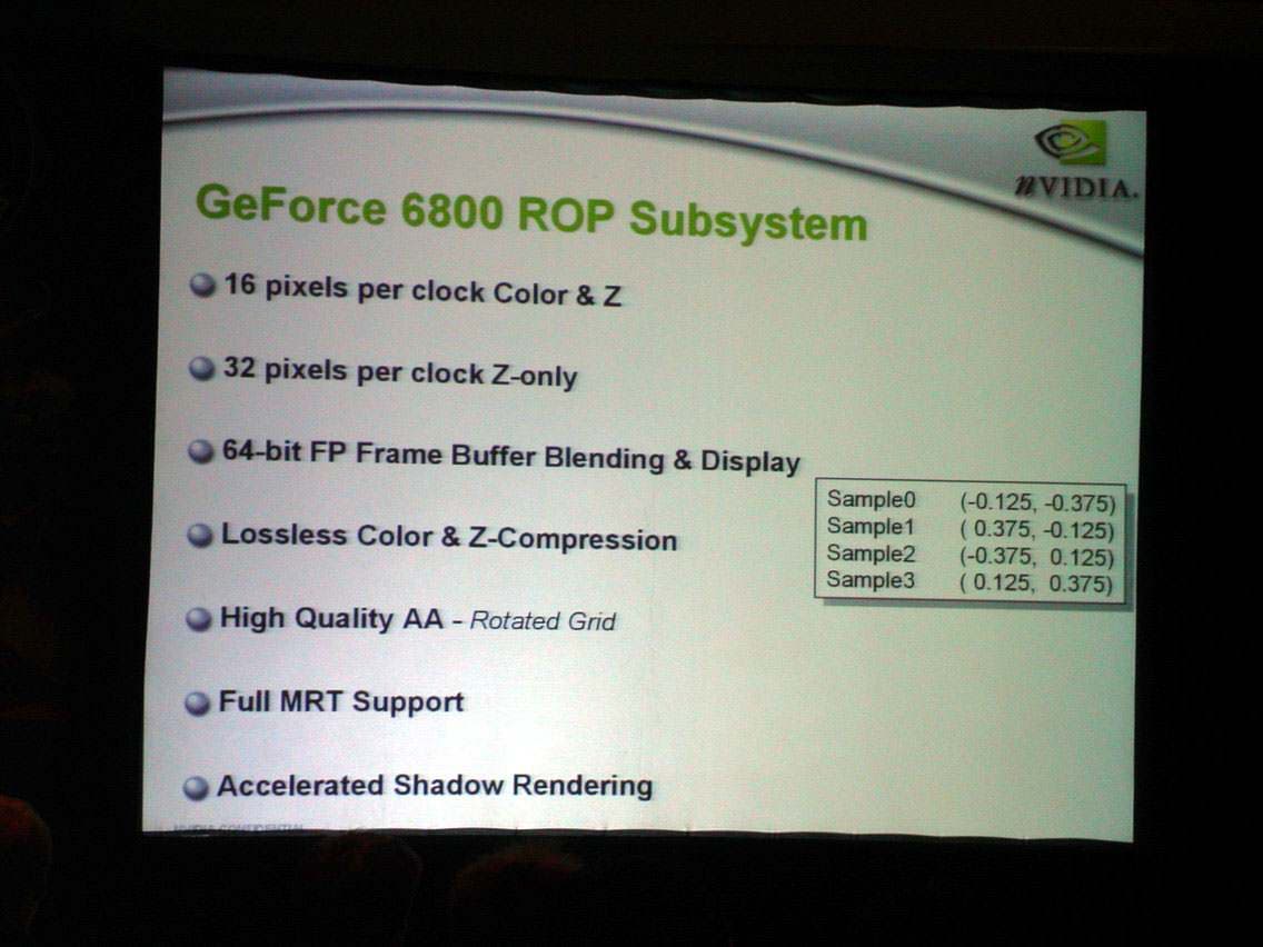 Я полагаю, что нет особой нужды сейчас подробно рассказывать о супер-мощном ускорителе, поскольку есть уже обзор по нему, и даже в двух частях. Лейтмотивом выступления был — массивный параллелизм. Что, собственно, и есть корень, соль, так сказать, новинки (ведь аж 16 конвейеров получили после 4×2 у NV38!).