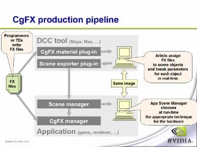 Если что-то вам не нравится, то прямо здесь же, не выходя из 3ds max вы можете отредактировать под себя исходный код шейдера, что, безусловно, прибавляет гибкости при использовании данной технологии. Шейдеры подключаются в виде .fx файлов. Себястьян обещал, что в самое ближайшее время данный плагин и наборы .fx файлов появятся в свободном доступе на сайте NVIDIA. Будем ждать и пробовать, так как на мой взгляд, данная технология в какой-то мере уникальна и весьма удобна для людей, занимающихся моделированием. Так же, подобные плагины появятся и для MAYA и для SoftImage, а через некоторое время данный механизм должен быть встроен в движки этих программых продуктов.