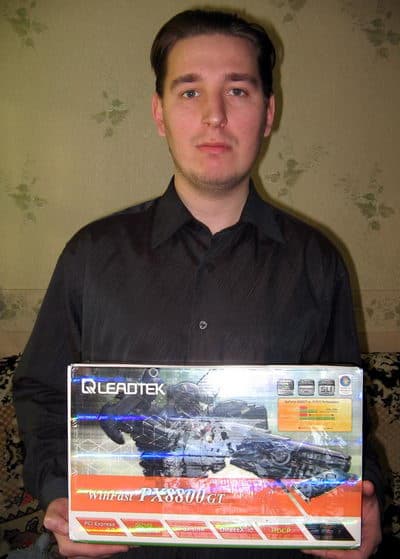 Евгению была выслана видеокарта GeForce 8800GT и фирменная майка с логотипами NVIDIA и SLI.