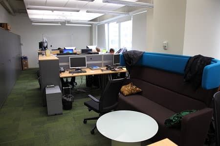 Как и в предыдущем офисе NVIDIA, здесь также нет кабинетов, все сотрудники компании сидят в одном большом зале размером почти на весь этаж, а из него ведут двери в комнаты для переговоров и другие дополнительные комнаты. К слову, даже директор московского офиса не имеет личного кабинета — вот до чего демократична компания NVIDIA.