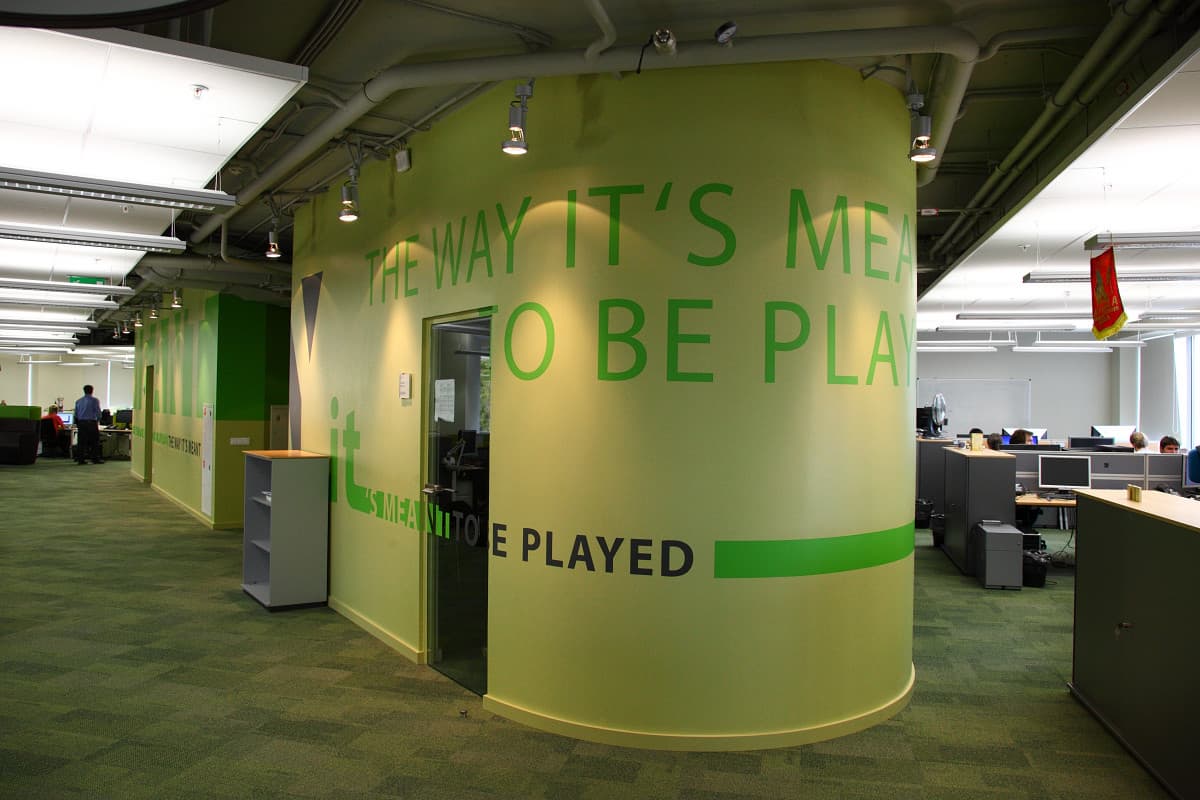 Внутренние стены второго этажа офиса NVIDIA в Москве оформлены в стиле известной программы поддержки игровых приложений The Way It's Meant To Be Played — соответствующие надписи разных размеров видны повсюду:
