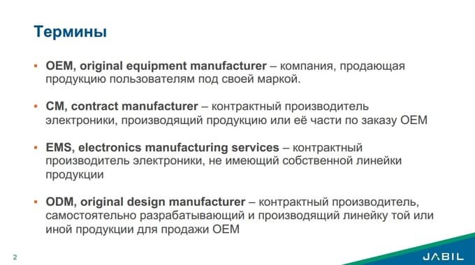 Семинар был организован российским офисом компании Jabil, и существенная часть касалась обсуждения работы и организации производственных процессов внутри компании. Однако значительная часть конференции была посвящена состоянию отрасли в целом и стоящим перед ней проблемам. Вот на этом моменте попробуем остановиться подробнее.