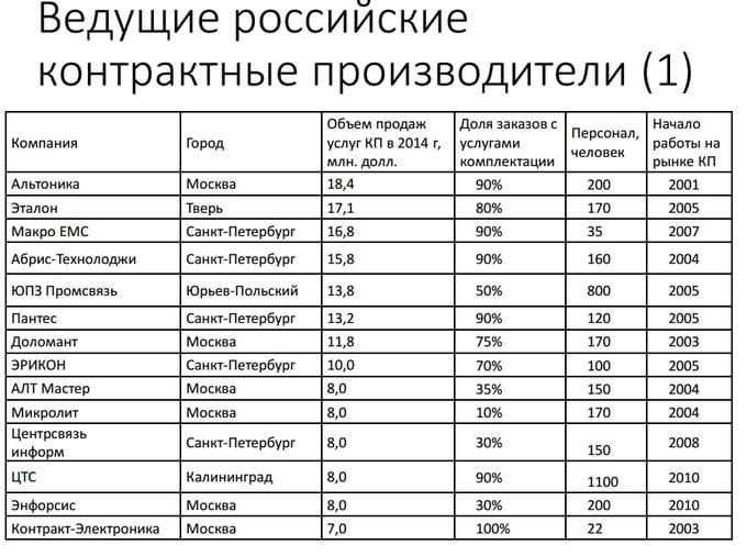 Состояние рынка контрактного производства электроники в России