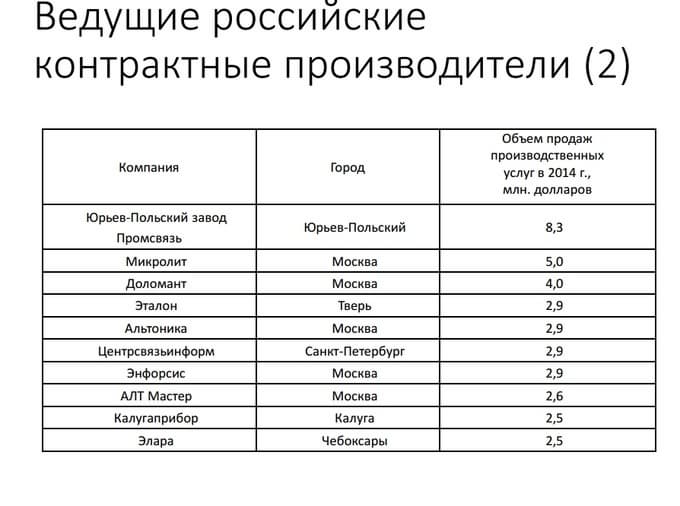 Если подходить ближе к России, то стоит отметить, что контрактное производство электроники в России невелико даже в сравнении с другими европейскими странами.