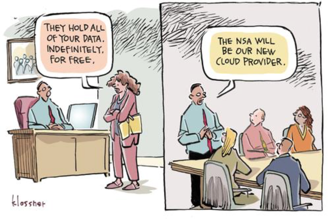 Потом — обнародование истории с «имплантом» АНБ в Yahoo!, поставившее точку в подозрениях о секретных приказах и продемонстрировавшее, что любую ИТ-компанию США могут обязать официально (!) встроить «имплант» в ПО и оборудование, в том числе и предназначенные для зарубежного использования — причем запретив ей кого-либо уведомлять об этом.