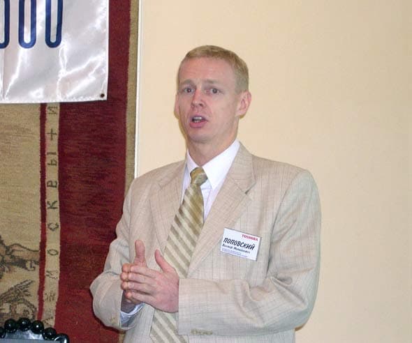 Конференцию открыл Виктор Поповский — начальник департамента профессиональной видеотехники московского представительства Toshiba Europe GmbH, рассказав о мировом рынке проекторов.