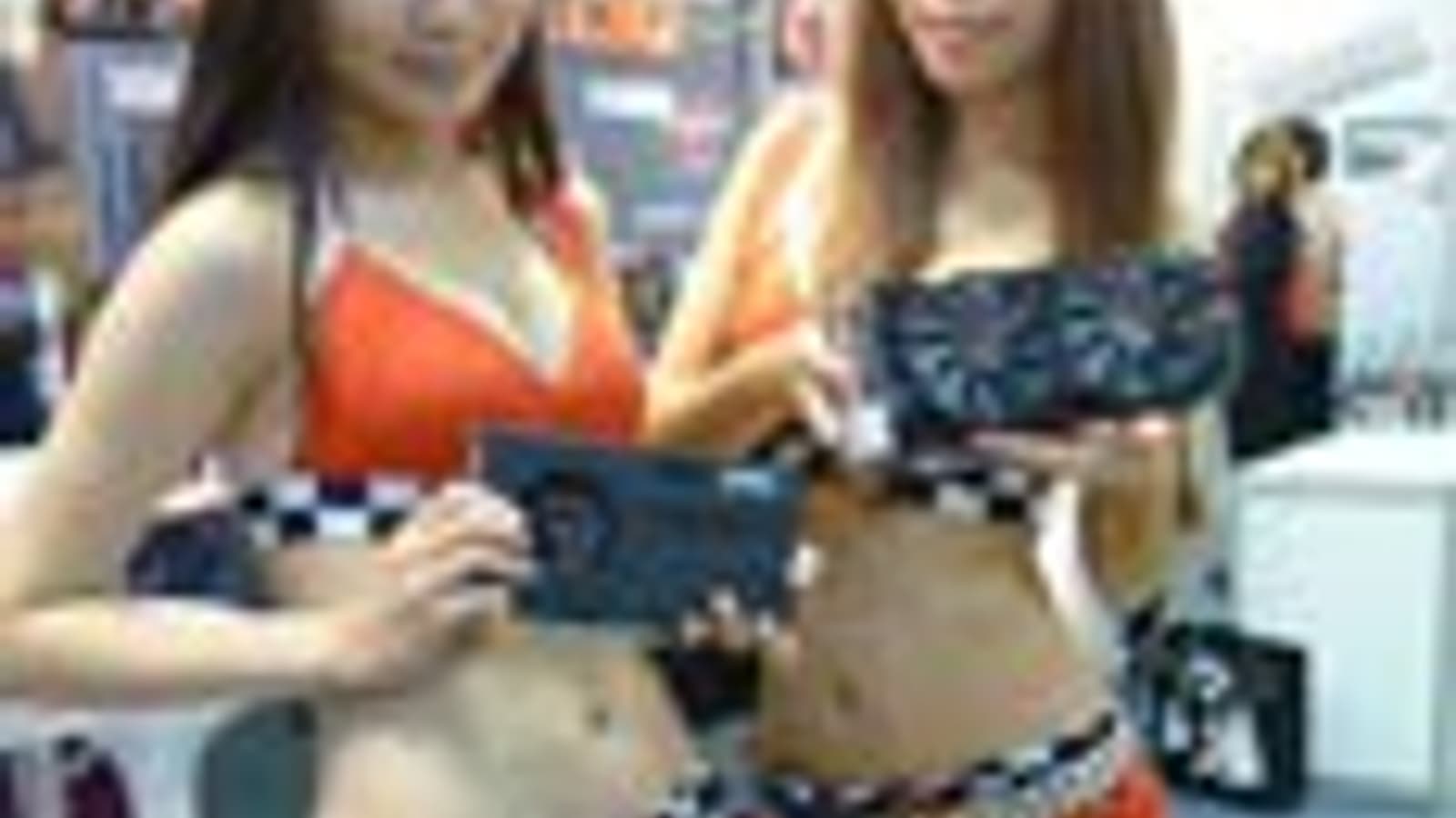 | Нет, это не близняшки. Просто они азиатки. К тому же, присмотритесь внимательней: видеокарты-то у них разные! | Жаль, не выписываю глянцевых журналов. Иначе непременно узнал бы модель и обзавёлся автографом. | Да, в руках у неё какое-то электронное устройство. Но разве это так важно? |