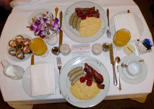 Поскольку вылет в Тайбей предстоял в ненормальное для нормального человека время (в 7 утра, т. е. в аэропорт требовалось приехать в 5, а это для «совы» равняется смертному приговору), завтракать пришлось прямо в номере сингапурского отеля, где мы останавливались перед посещением Тайваня. Завтрак, надо сказать, удался.