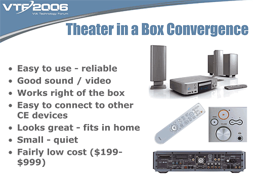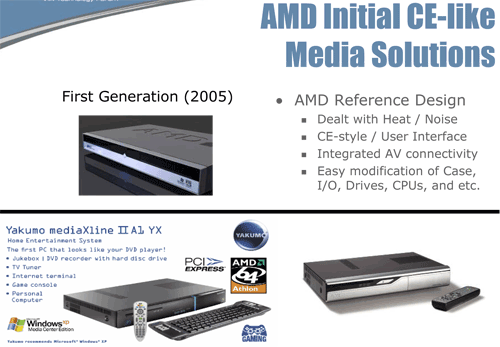 А также в распространении технологий персональных компьютеров на традиционные устройства потребительской электроники, придании им возможностей работы с HD-контентом и обмена/трансляции информацией, объединение нескольких таких устройств в единый центр развлечений (в одном корпусе).
