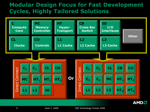 Ближайшей надеждой на технологический прорыв AMD считает свои четырехъядерные процессоры, выход которых намечен на 2007 год. Они будут обладать следующими преимуществами:
