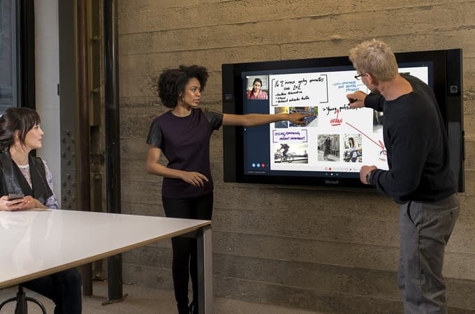 Новинка хорошо подойдет для ситуаций, когда, например, проводится встреча рабочей группы с интенсивным обсуждением и обменом информацией, но при этом участники находится в разных местах. Тогда Surface Hub может обеспечить им канал общения (аудио и видео), а также синхронизировать материалы на экране между двумя устройствами.