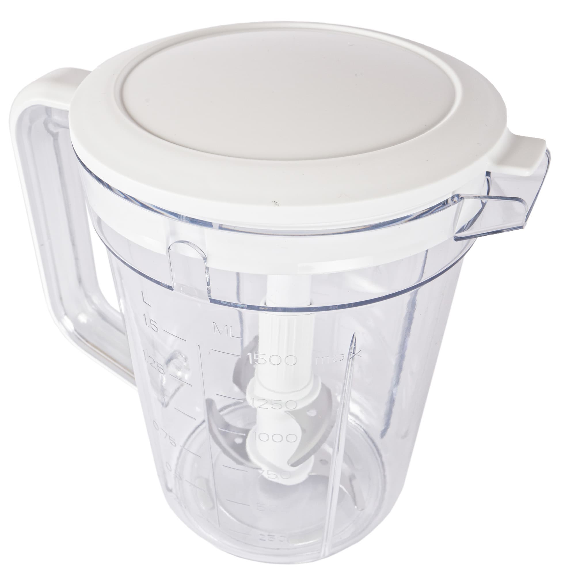 Кувшин позволяет хранить приготовленные блюда и полуфабрикаты в холодильнике прямо в емкости, если заменить моторный блок с фиксатором на крышку.