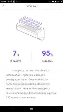 Приведенные в руководстве интервалы обслуживания и ресурс расходников являются приблизительными и зависят, разумеется, от интенсивности использования пылесоса. Мобильное приложение позволяет более точно определять срок обслуживания или замены.