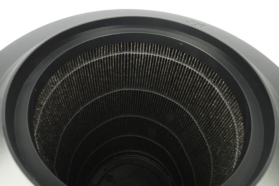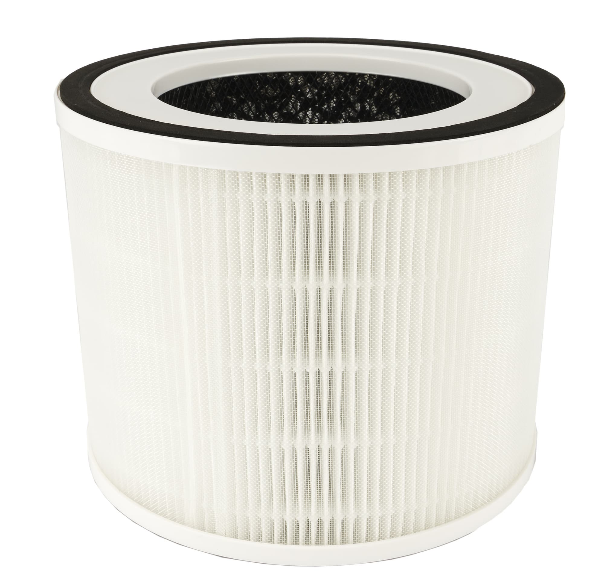 Сменный цилиндрический картридж обеспечивает трехступенчатую фильтрацию: крупную пыль задерживает предварительный фильтр из сетки, более мелкую — HEPA-элемент класса H13 (до 99,95% частиц диаметром до 2,5 микрон). Он очищает воздух от пыльцы, сажи, дыма и прочих взвешенных в воздухе. Пройдя этот фильтр, очищенный воздух попадает в угольный фильтр и расстается с ненужными ароматами.