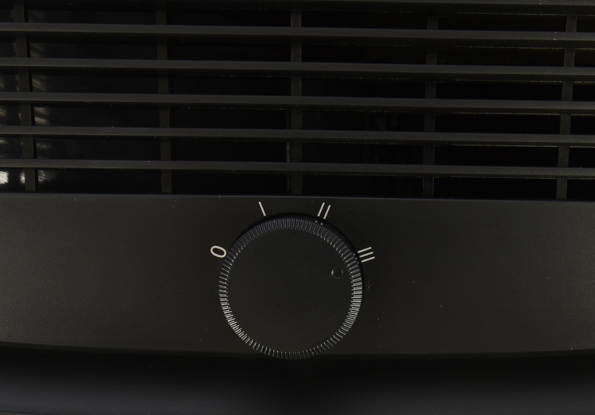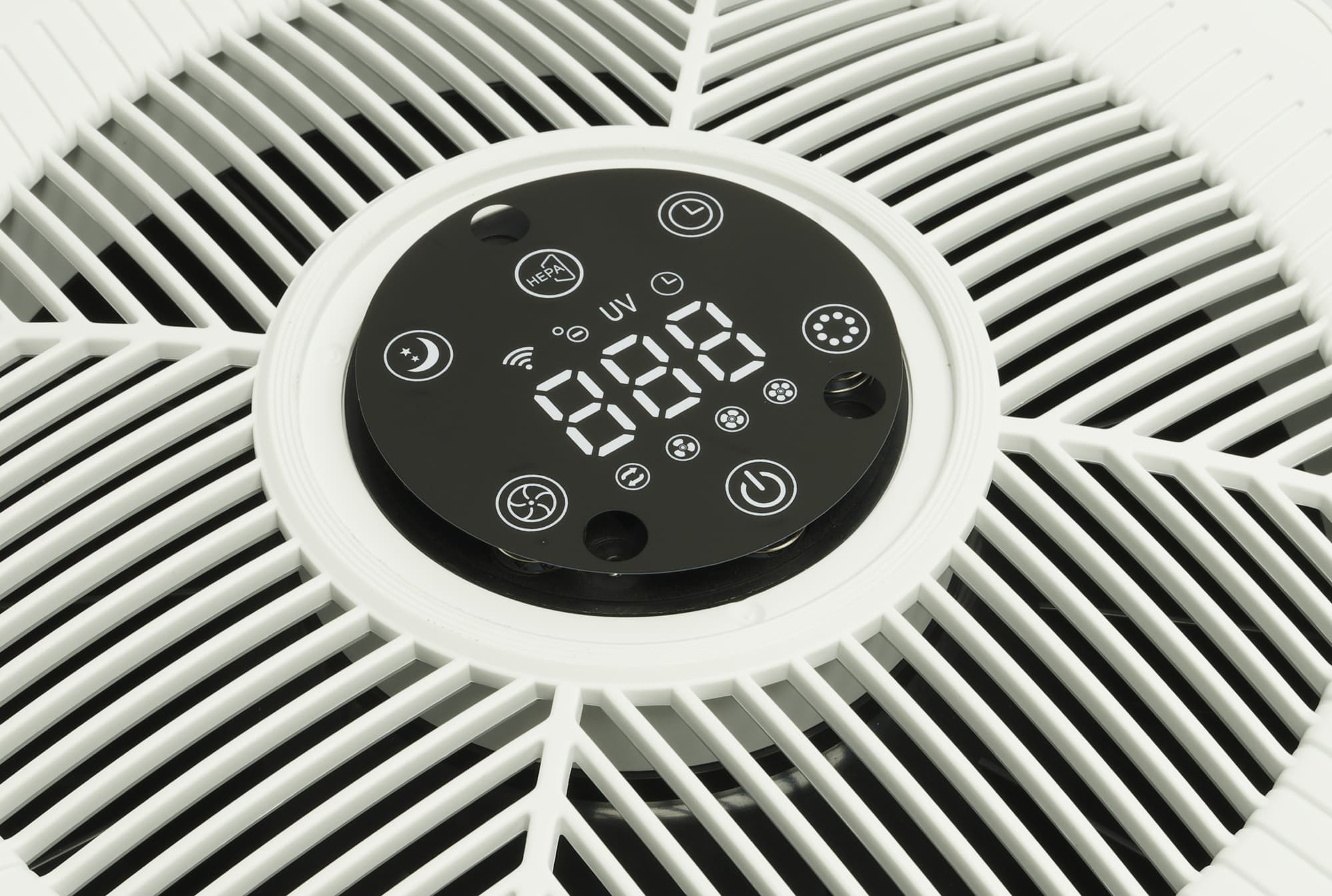 Многослойный фильтрующий элемент включает в себя предварительный фильтр — капроновую сетку, которая защищает от пыли и крупного мусора EPA-элемент класса H11. Он, в свою очередь, очищает исходящий воздух от аллергенов, пыльцы, мелкой пыли и взвешенных в нем микрочастиц, задерживая, согласно классу, до 95% частиц диаметром до 2,5 мкм (PM2.5). Третий слой — угольный, впитывающий неприятные запахи. Нам понравилось, что комплект запасных фильтров FPHC-107 доступен на сайте производителя, хотя с момента тестирования прошло много времени. Управление элементарное механическое: включение и три скорости работы вентилятора.