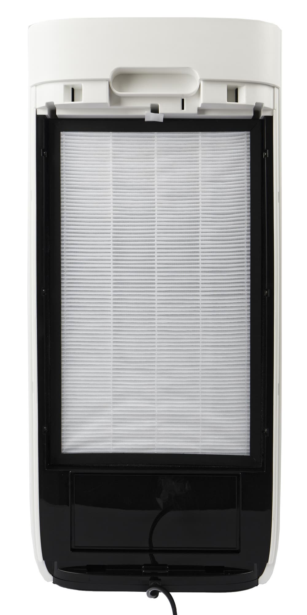 Фильтрующий элемент состоит из многоразового сетчатого фильтра очистки от крупных частиц и трехслойного многофункционального картриджа. Первый его слой из нетканого материала с голубой пропиткой задерживает мелкую пыль, просочившуюся через противопылевую сетку и продлевая срок службы следующего за ним HEPA-элемента, соответствующего по заявленным свойствам классу H12. Запахи и летучую органику нейтрализует завершающий фильтрующий этап — угольный фильтр.