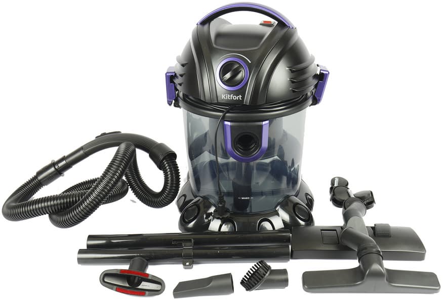 Как и любой хозяйственный пылесос, Kitfort KT-5144 — весьма тяжелый (9 кг), шумный (на максимальной мощности мы зафиксировали 87 дБА). Максимальная мощность всасывания прибора составляет 198 Вт. КПД модели составил 17,4%: неплохо!