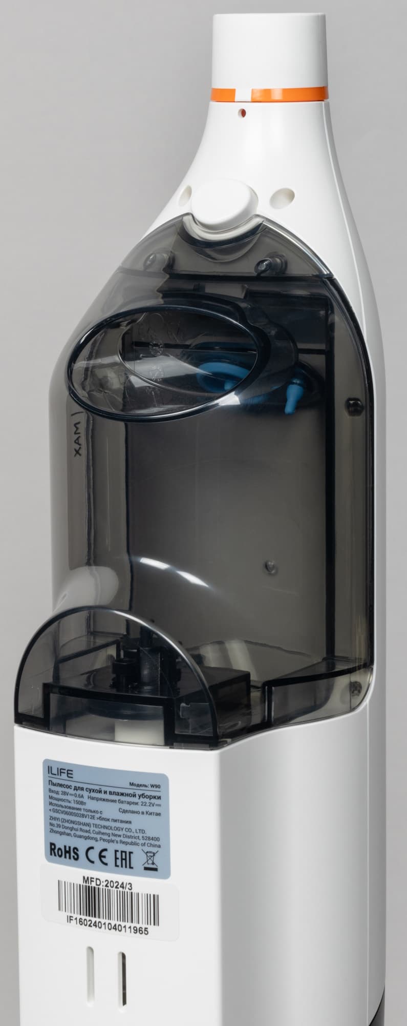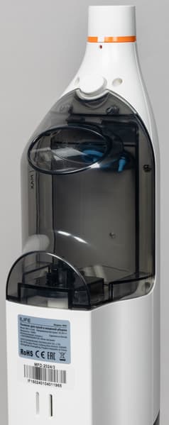 Моющий вертикальный пылесос по конструкции сложнее, чем стик для сухой уборки. В его конструкцию входят баки для чистой воды (как правило, объемом 0,6-0,7-0,8 л на корпусе или около 0,4 л в насадке), и в сборке вместе с водой пылесос всегда тяжелее, чем на витрине. Пылесосы резервуаром для воды в насадке легче — около 4-4,5 кг, но не все они всасывают отработанную грязную воду, многие просто распределяют воду по полу. Модели с системой всасывания грязной воды весят не менее 5, а чаще 5,5 и 6 кг, как, например, Garlyn Aqua Pro 7 Turbo с резервуарами объемом 0,7 и 0,8 л. Зато и работать без дозаправки водой он может долго.