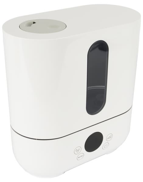 Прибор оснащен резервуаром объемом 3,5 л, заявлены производительность около 300 мл/ч и уровень шума 38 дБ. На фронтальной панели расположен дисплей с индикацией уровня влажности и сенсорными кнопками: можно выбрать автоматический режим, задать уровень влажности от 30% до 70%, либо вручную выбрать мощность из трех уровней.