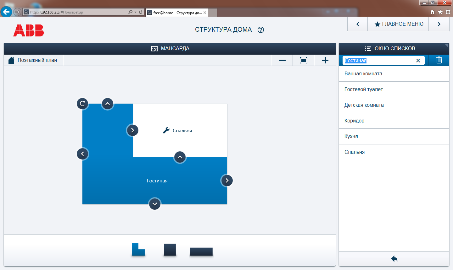 Есть и иконки для изменения масштаба изображения, которые могут быть полезны в случае больших по числу устройств конфигураций. Жаль, что комнаты выделяются очень слабо и нет возможности изменить хотя бы цвет фона для них.