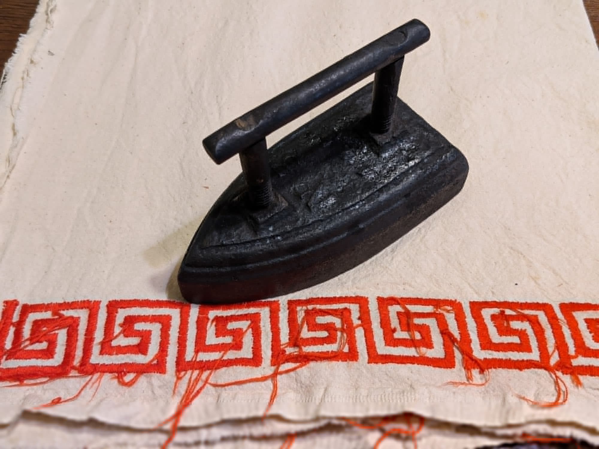 Нагретый до 180-200 °C прибор отлично справился с полотном, а вышивка шелковой нитью не пострадала при отглаживании.