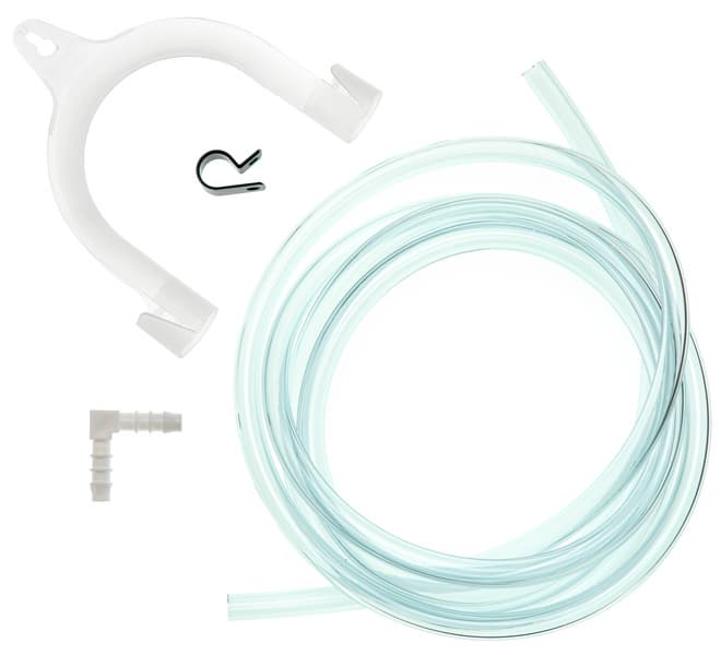Для подключения к канализации в комплекте поставляется специальный набор из прозрачной трубки, пластикового уголкового фитинга и крепежа.