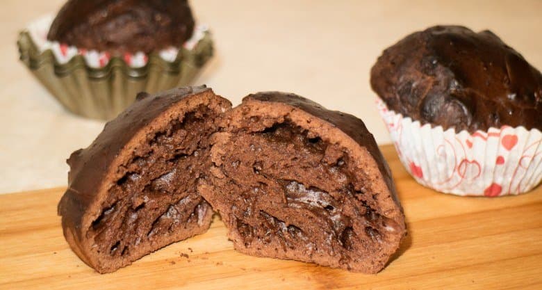 За это время кексы значительно увеличились в объеме, хорошо поднялись и немного сгорели. Консистенция теста получилась пересушенная и слегка жестковатая. Думаем, что 15 минут работы хватило бы для того, чтобы тесто хорошо пропеклось.