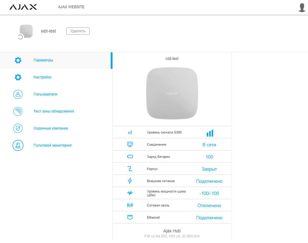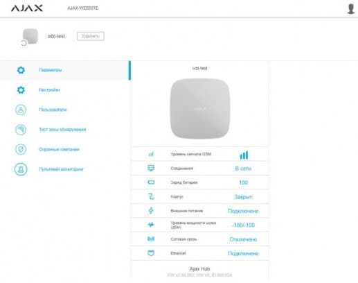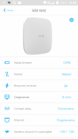 Каждое из подключенных устройств, как и сам центральный хаб, обязательно имеет свои настройки. Важный момент: в хабе отсутствует собственный веб-интерфейс. Подключиться к нему напрямую по локальной сети не получится. Даже попытки просканировать адрес хаба на предмет открытых портов ни к чему не приведут — охранная централь попросту не ответит на эти стандартные запросы. Управление хабом всегда производится только через мобильное приложение или веб-сервис, которые работают в фирменном облачном сервисе Ajax. С одной стороны, это правильно — таким образом отсекается часть попыток несанкционированного доступа к хабу из локальных сетей, недоступных для контроля силами сервиса Ajax. Но, с другой стороны, такой факт связывает руки «продвинутого» пользователя, который абсолютно уверен в надежности своей сети. Кстати, а не по этим ли причинам безопасности хаб не имеет Wi-Fi адаптера, в результате чего соединение хаба с сервером может быть осуществлено только LAN-кабелем или через мобильный интернет? Очень может быть.