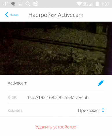 После этого камера выглядит в списке подключенных устройств как отдельный гаджет, а в качестве его иконки используется обновляемая миниатюра стоп-кадра, которая берется из видеопотока. Увлекшись, мы подключили к хабу еще одну камеру, благо к хабу разрешается подключить до 10 IP-камер.