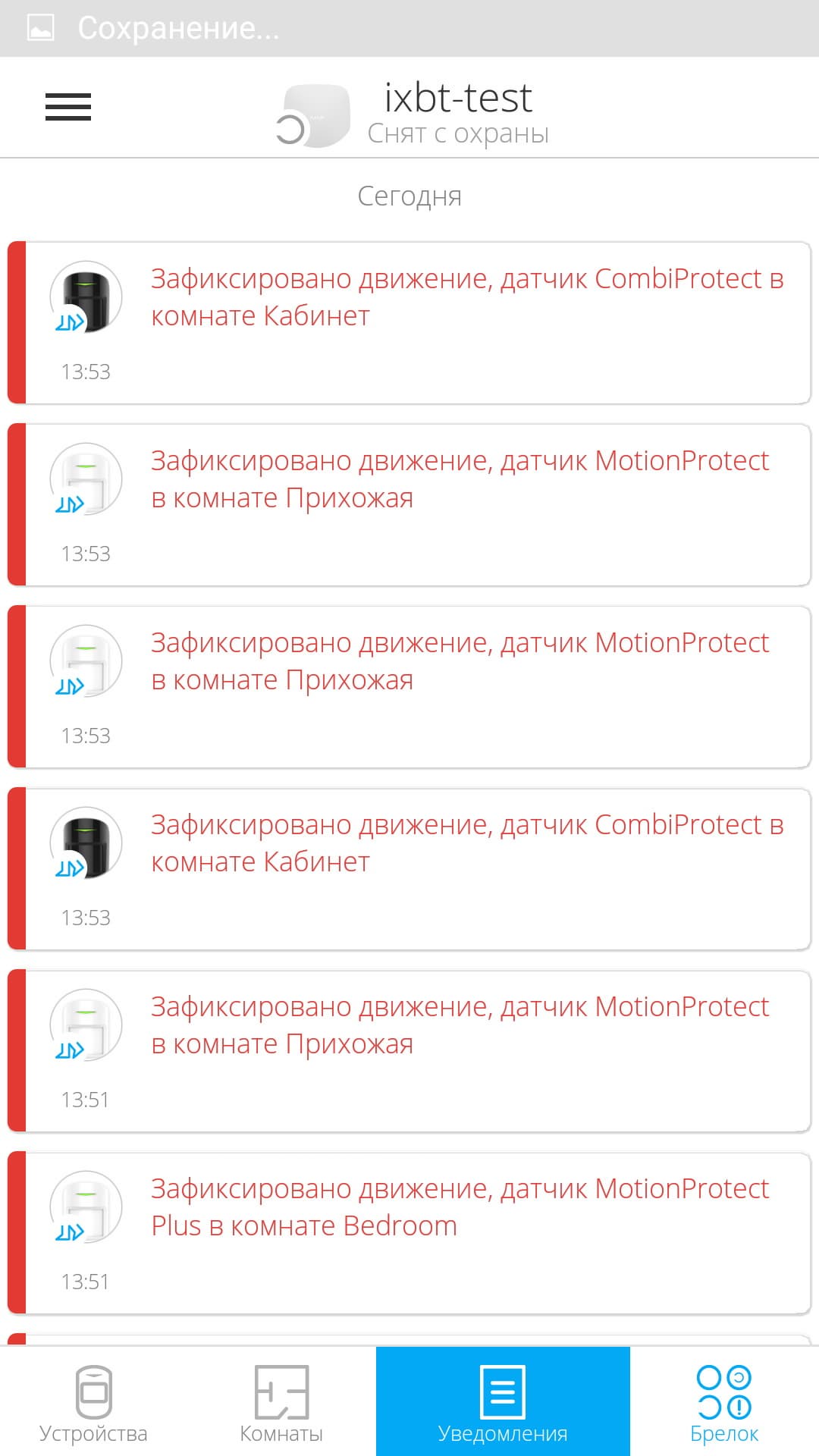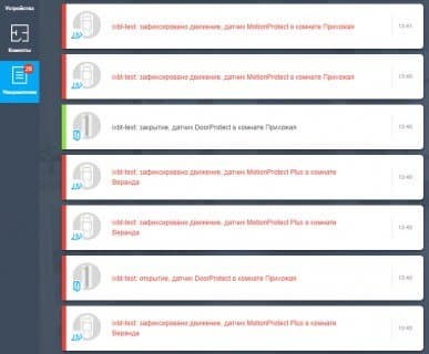 За несколько дней — чуть больше недели — пока система была установлена и круглосуточно работала в доме, ее датчики многократно фиксировали тревогу. В основном это были датчики движения и дверные датчики. День и ночь до сотни и более оповещений о движении или открытии/закрытии дверей поступали на смартфон и отображались в веб-форме облачного сервиса, ведь в доме находился человек.