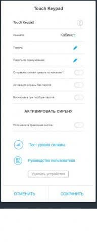 Помимо просмотра информации, пользователь может изменить некоторые параметры устройства, характерные для того или иного типа датчика. Не станем приводить скриншоты настроек всех имеющихся на тестировании датчиков, ограничимся самыми характерными из них.