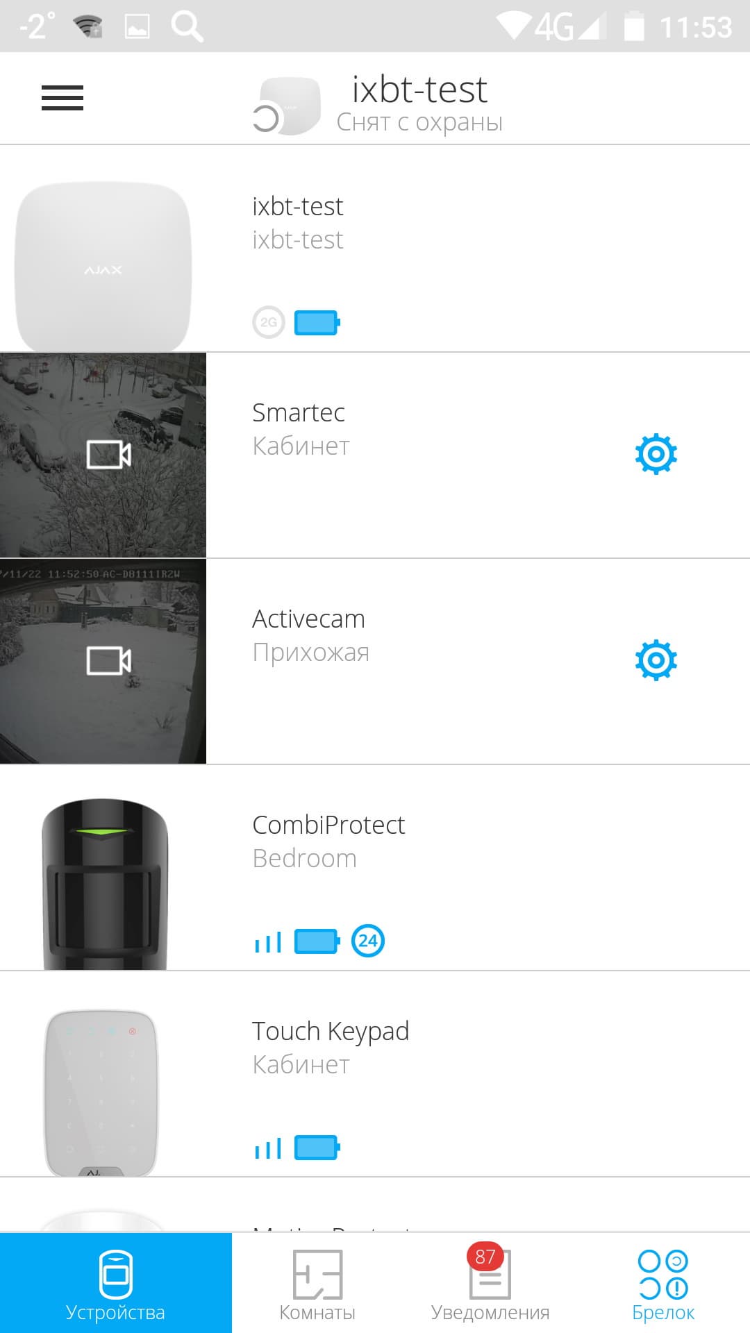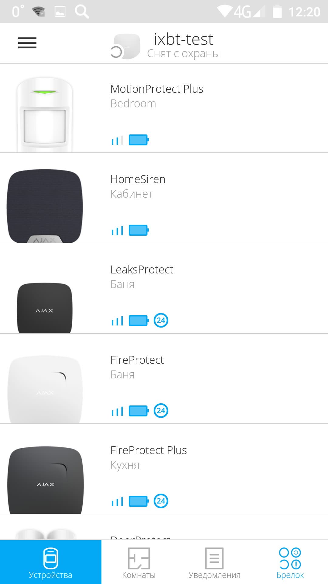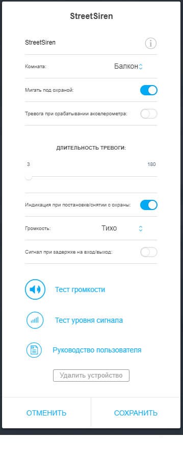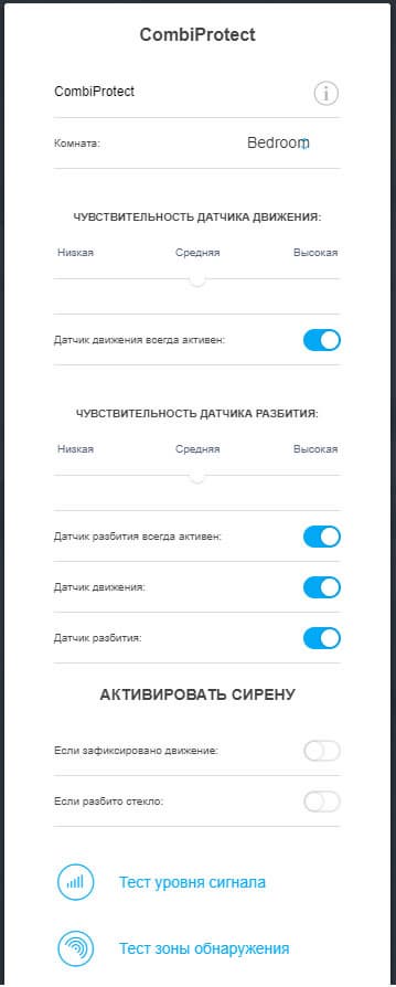Наконец, нельзя не упомянуть об одной «побочной» и крайне полезной функции — удаленном управлении. Выше мы вскользь об этом говорили, но на практике такое управление выглядит гораздо более эффектно. Каждый датчик имеет функцию самотестирования, которая запускается в его настройках. Реакция датчика на такую команду имитирует режим тревоги. Следовательно, если устройство оснащено сиреной, то она обязательно сработает. Это может оказаться полезным, например, для привлечения внимания. Или отпугивания. Находиться при этом пользователь может где угодно — расстояние нынче не играет никакой роли.