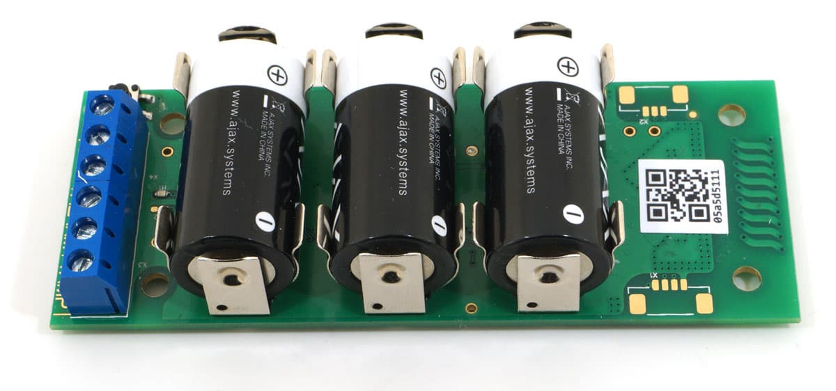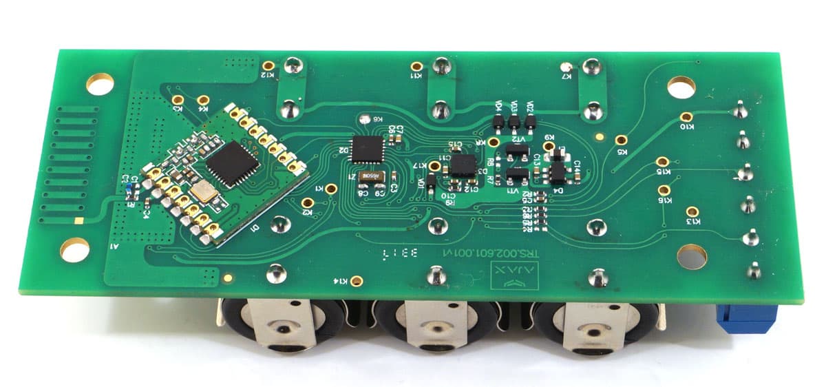Эта плата, не имеющая даже корпуса, предназначена служить мостиком между внешними датчиками сторонних производителей и системой Ajax. Такими «чужими» устройствами могут быть комнатные либо уличные датчики движения, открытия, вибрации, разбития, возгорания, газа, протечки и другие. Главное требование к сторонним датчикам — наличие проводного интерфейса и NC/NO контактов. Будучи подключенными к модулю Ajax Transmitter, датчики органично вливаются в существующую сеть Ajax и впоследствии работают как «свои».