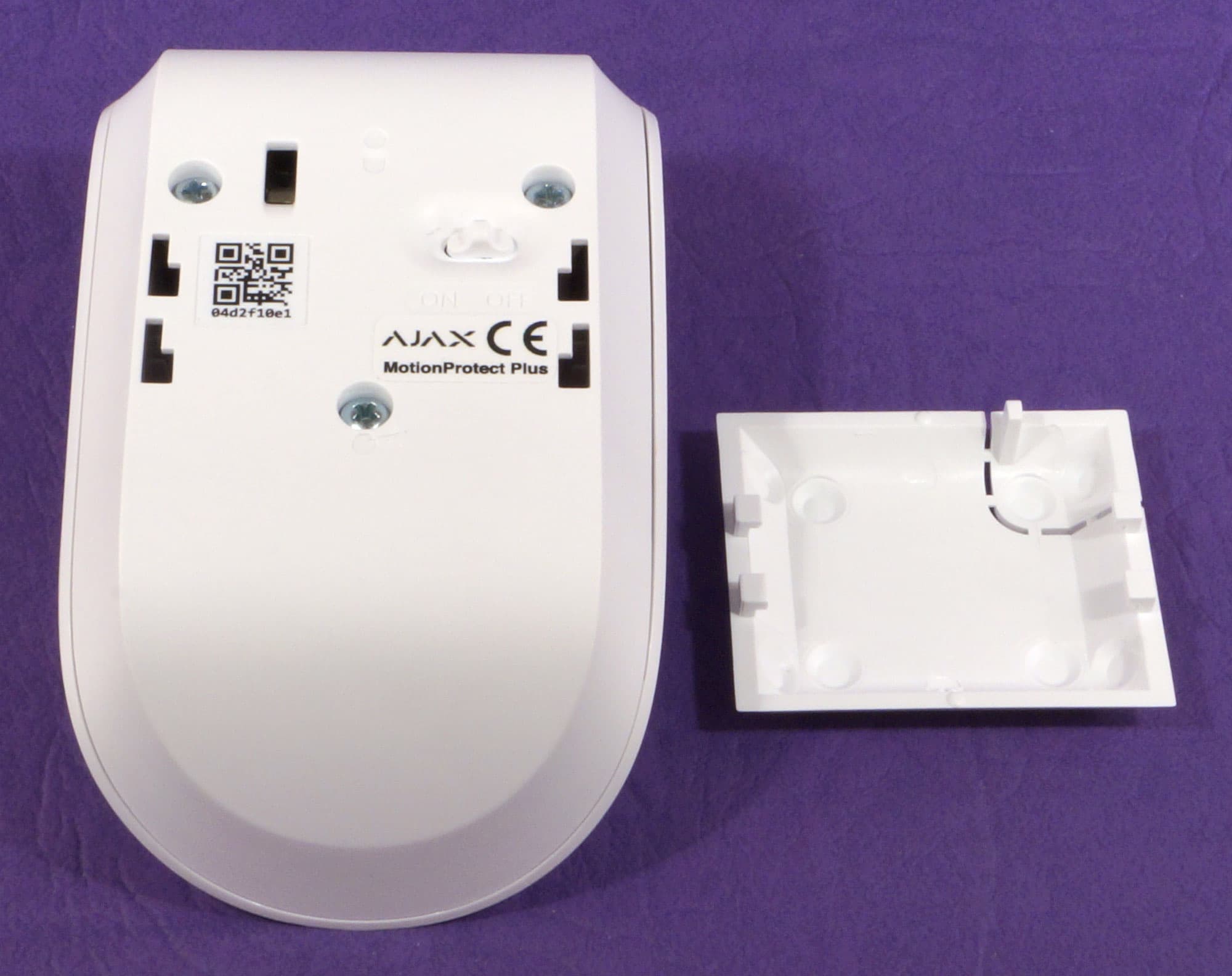 Конструкция крепления у всех трех устройств абсолютно одинакова: сдвижная площадка, которая привинчивается либо приклеивается к вертикальным поверхностям — на стене, над дверью, над окном и т. д. Датчик также можно прикрепить под углом 45°. Под площадкой находится привычная кнопка включения/отключения устройств, а также прорезь с утопленной скрытой кнопкой, извещающей о снятии площадки (тампер).