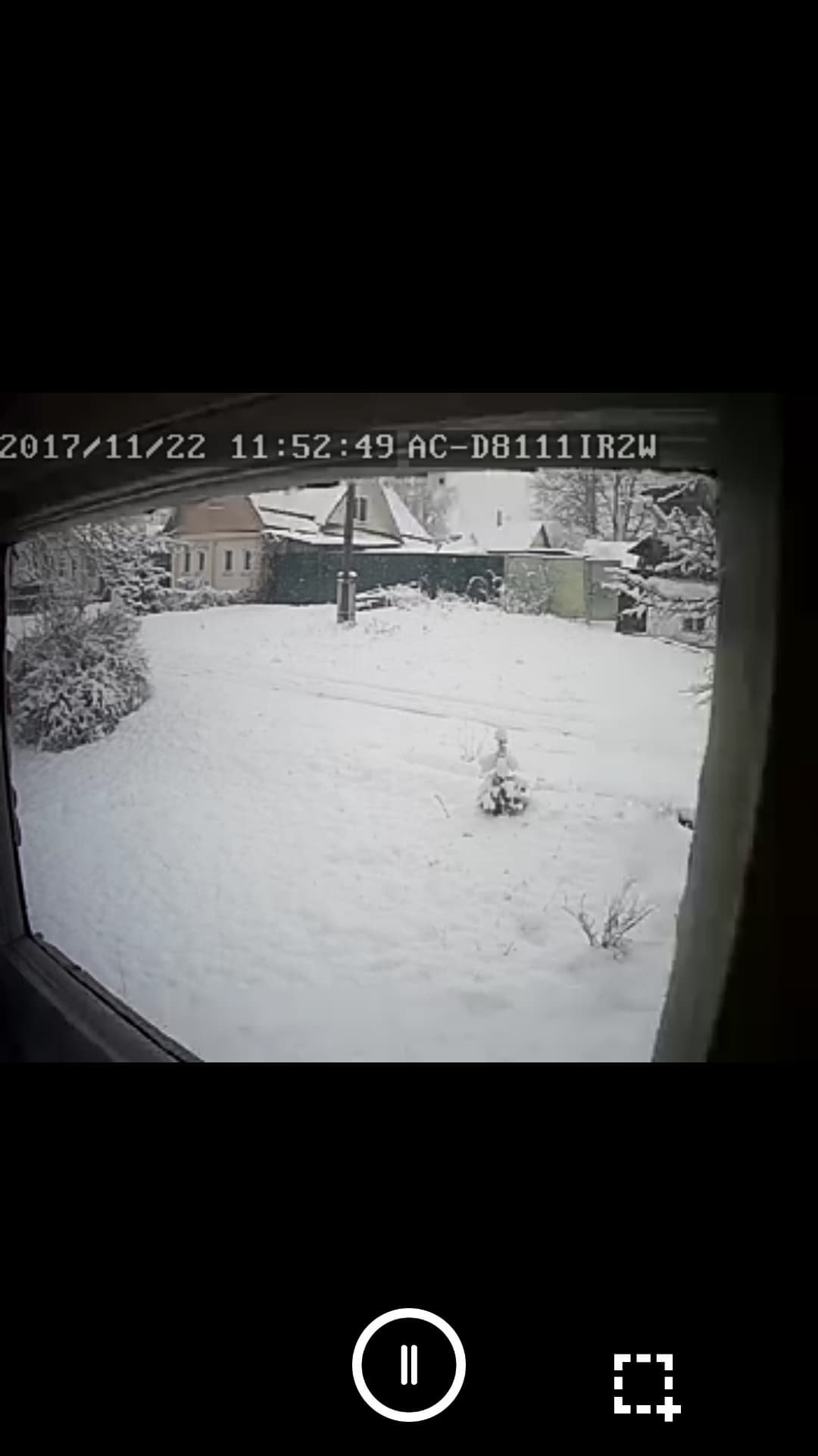 | Две IP-камеры, включенные в систему | Просмотр возможен в портретном и ландшафтном режимах, видеопоток поступает вместе со звуком. Здесь же можно создать стоп-кадр, сохранив его в память смартфона | |
