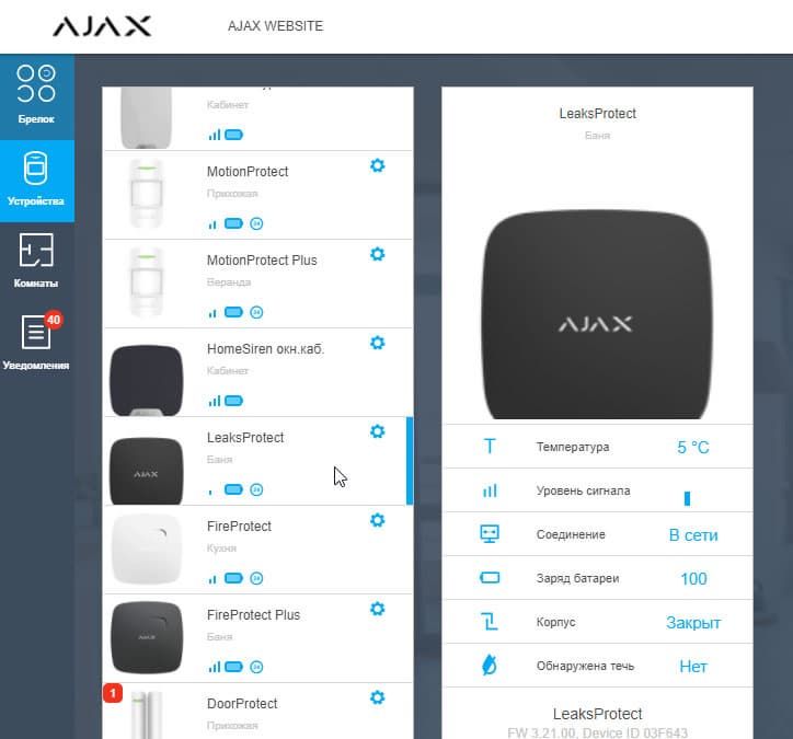 Центральный хаб вместе с кнопочной панелью логично разместились в рабочем кабинете, уличная сирена — соответственно, на балконе (чтобы вся округа была в курсе), противопожарный датчик FireProtect занял место рядом с газовым отопительным котлом, детектор движения — MotionProtect — охраняет прихожую. А за температурной обстановкой и наличием протечки теперь следит LeaksProtect, разместившийся в отдельном здании, в бане. Прочим датчикам также нашлось место для ответственного поста, ни один не простаивал без дела.