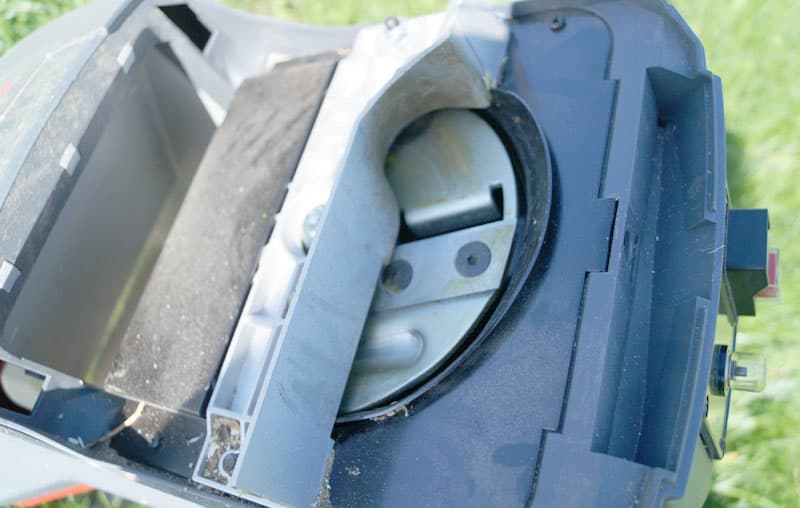 Наконец, последнее. Не надо увлекаться одним лишь измельчением. Время от времени следует поглядывать на полупрозрачный контейнер. Наполняется он небыстро, примерно за 20 минут в спокойном темпе работы с периодическим снятием верхней части, чтобы удалить застрявшие ветви. И если машина вдруг перестала работать, казалось бы, ни с того ни с сего — в первую очередь проверьте, не переполнился ли накопитель.