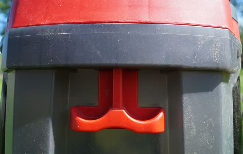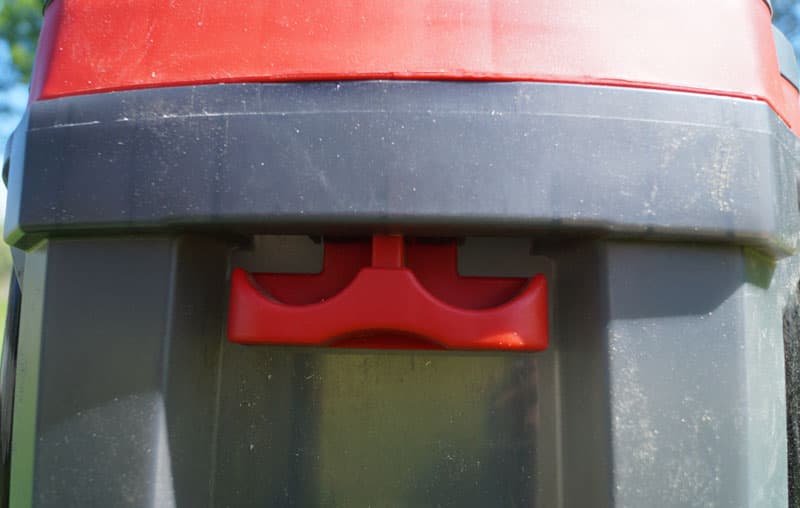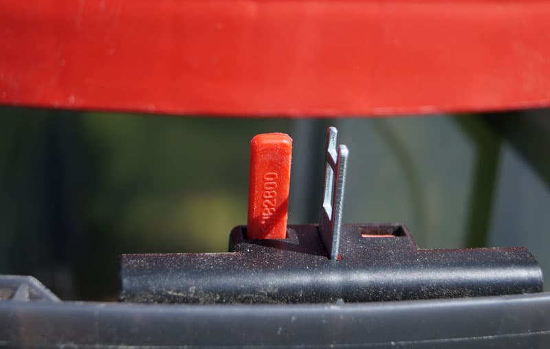 Третья защита. Задвижка мусоросборочного контейнера не только запирает его в корпусе измельчителя, но и включает электрическую цепь. И пока этот фиксатор не поднят, двигатель питание не получит. Это значит, что без установленной и запертой корзины машина работать не будет.