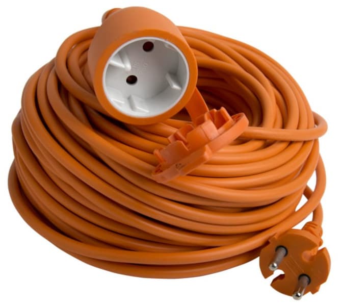Как видим, это не розетка, а вилка. А значит, потребуется удлинитель с розеткой на конце. Примерно такой. Лучше бы, конечно, трехжильный (с заземлением), но вряд ли у большинства садоводов в подсобном хозяйстве оборудовано заземление.