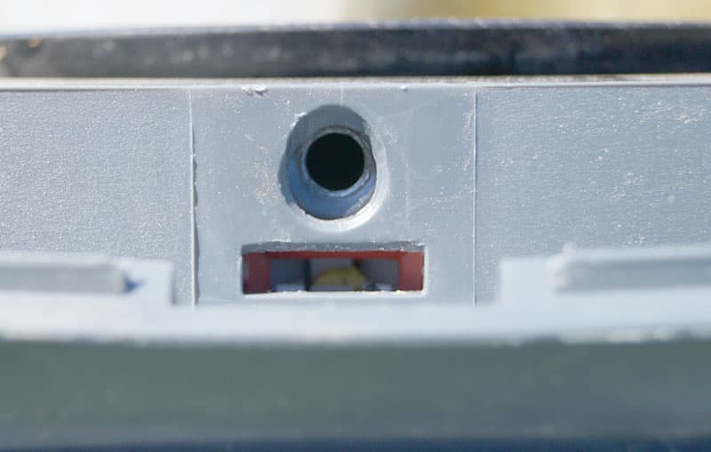 По мере снятия верхней части металлический толкатель выходит из углубления, в котором скрыт контакт. В результате контакт размыкается и двигатель не может получить питание.